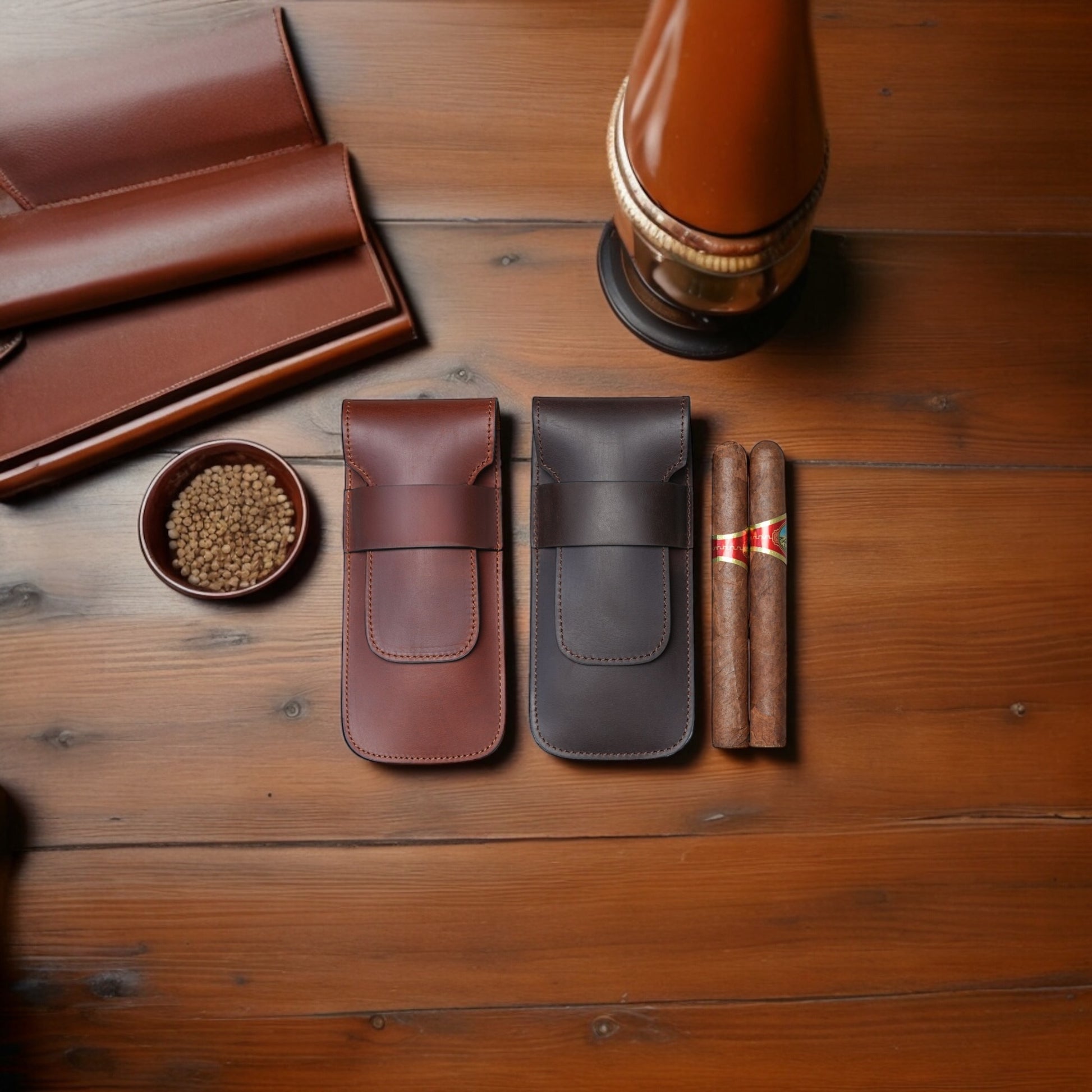 Custom cigar cases can be branded with initials, names, even a logo (some restrictions apply). Cases are made by hand, by us, in Mississippi. Various leather colors and qualities available.